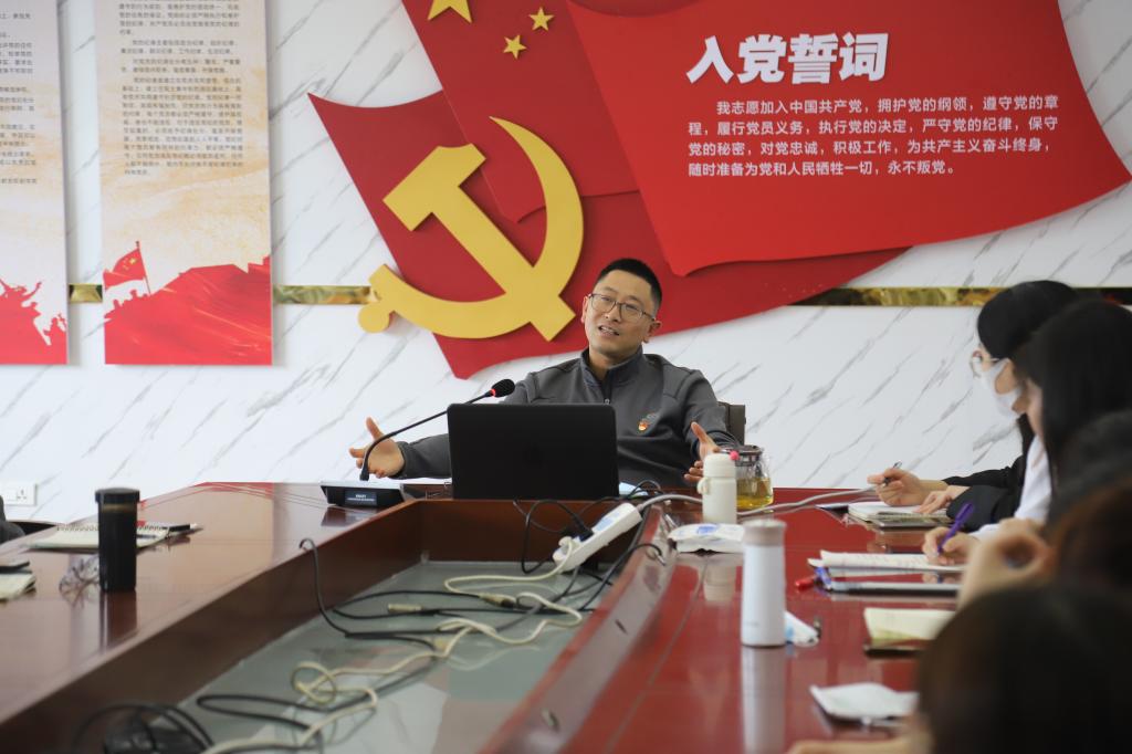 本网讯(记者 欧阳洁/文 卢子畅/图)5月28日,我院联合外国语学院、音乐舞蹈学院及美术与设计学院于音乐舞蹈学院四楼会议室开展以“铮铮誓言,拳拳赤心”为主题的党课教育活动。我院党总支书记曹召胜受邀担任本次活动主讲人,四院全体发展对象参与此次培训活动。