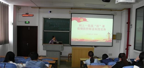 随后,欧阳娟同志以“同上一堂战‘疫’课,疫情防控彰显制度优势”为主题,以抗议宣传片为出发点引出主题,阐述疫情防控彰显制度优势的四个方面。同时视频也展现中国特色社会主义制度的优越性,她号召在场人员学习中国特色社会主义制度,促进制度优越性的体现与巩固。