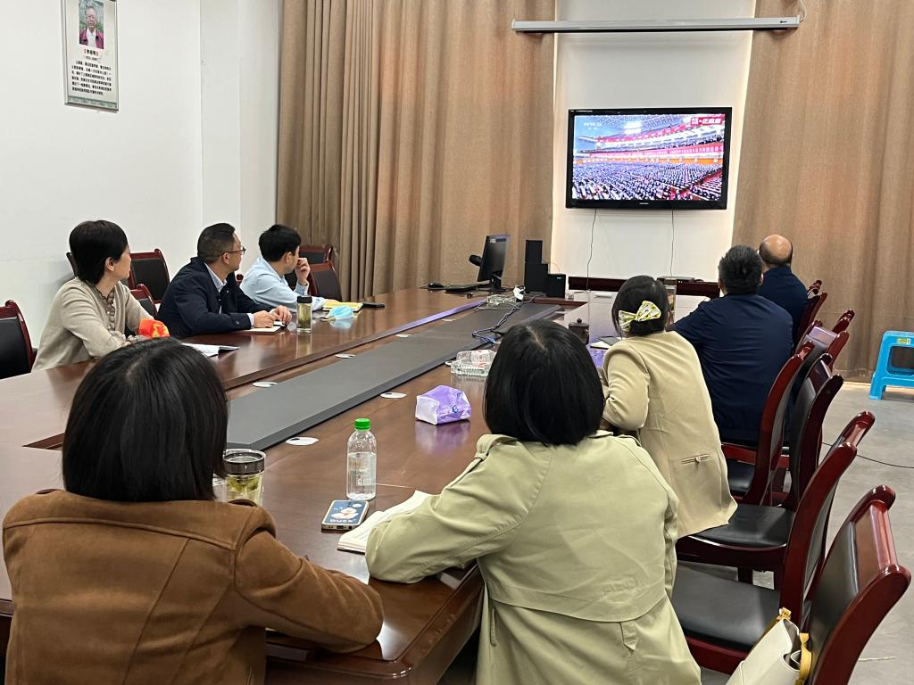 上午10时,大会正式开幕,我院党总支理论学习中心组成员及副科级干部在修远楼5B1205集中观看,同时我院学生代表也在修远楼5A506教室通过视频直播见证了“二十大”的开幕盛况。