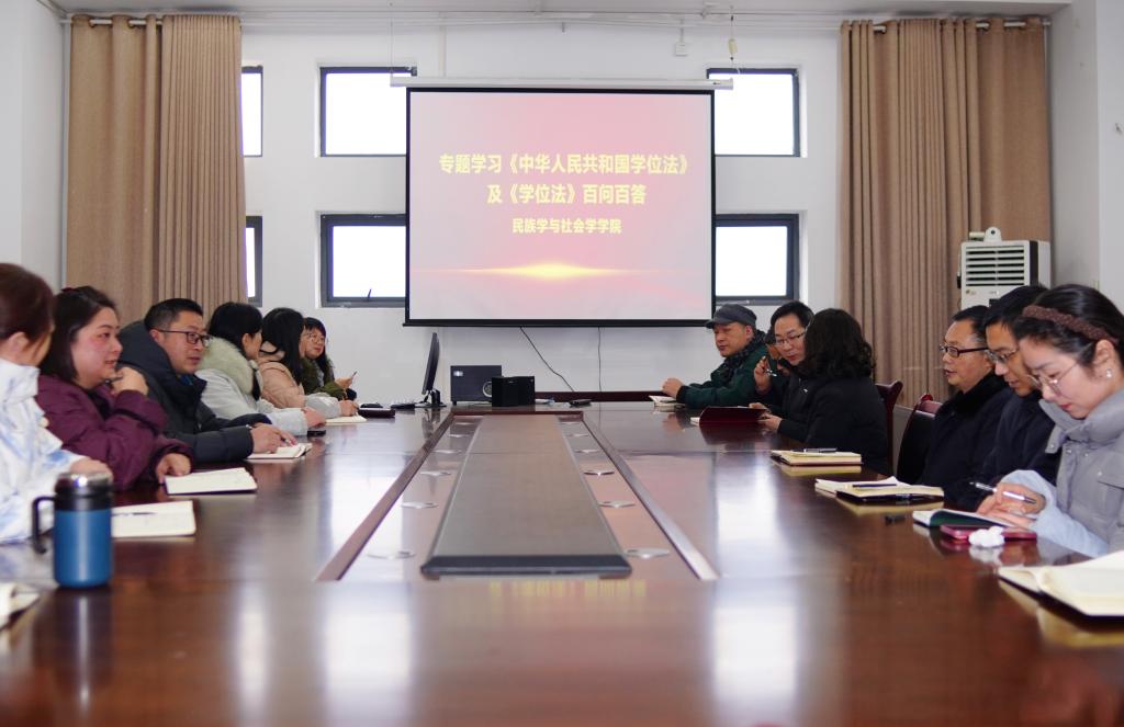 (本网讯 汪文丽/文 邵妍凯/图)2024年12月25日下午,我院于修院楼5B1205会议室组织全院教职工学习《中华人民共和国学位法》及《学位法》百问百答。