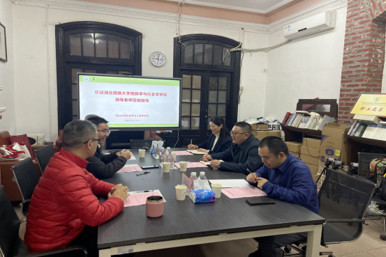 1月9日上午,在中山大学社会学与人类学院会议室,曹召胜一行与该院余成普院长、社会科学学部主任张应强教授、夏循祥老师交流了学院发展与专业建设情况,就人才队伍建设、社会学专业人才培养等方面进行了深入交流。