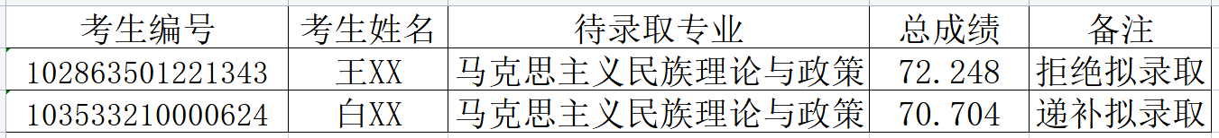 2023年民族学与社会学学院第一轮调剂考生替补录取公告