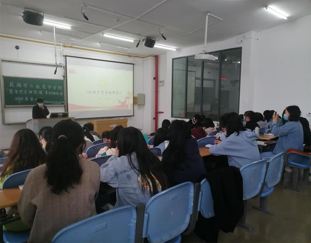 本网讯(记者 谌海容/文 刘欢 陈舒琦/图)4月14日,我院本科生党支部于修远楼5A502教室开展2022年度“青年党员讲党课”系列微党课第三期。我院本科生党支部书记张冰,团总支书记熊霞出席本次活动,学院全体本科生入党积极分子及本科生学生党员参与聆听。