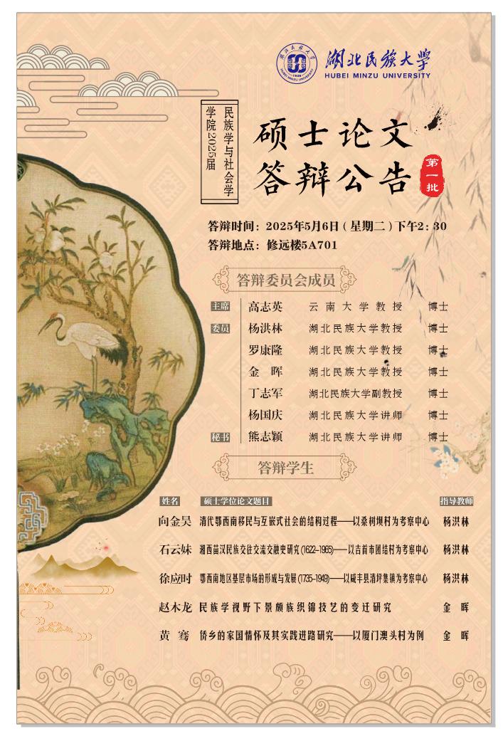 2025年民族学与社会学学院民族学专业春季研究生论文答辩会(一)
