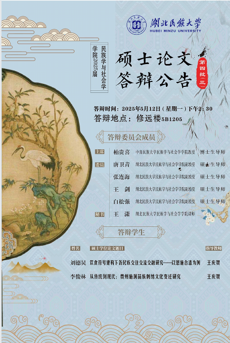 民族学与社会学学院2025届硕士学位论文答辩公告(5月12日)
