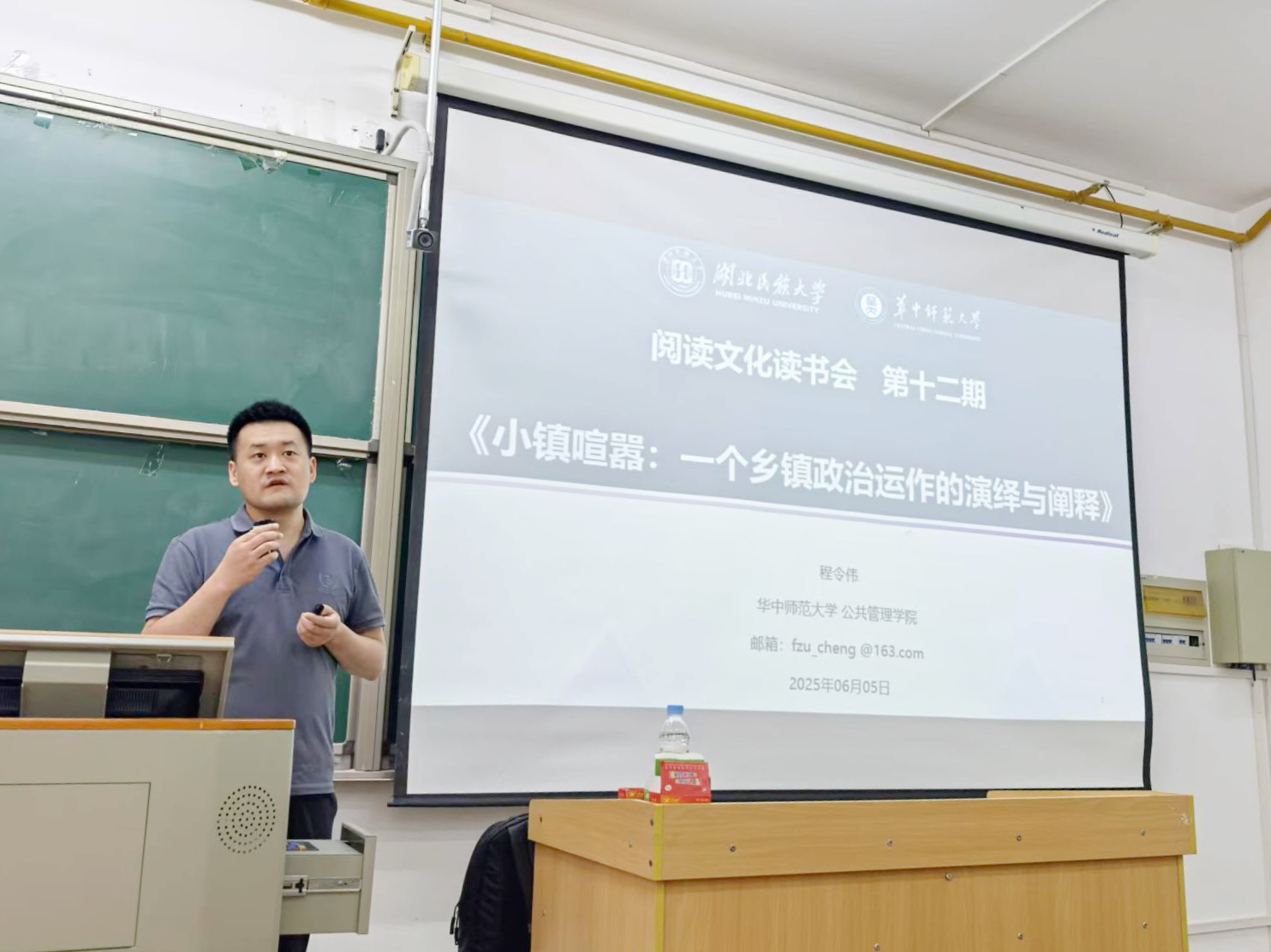 (本网讯 毛钦韵/文 毛钦韵/图)6月5日,华中师范大学公共管理学院程令伟博士应邀在我院作题为《小镇喧嚣:一个乡镇政治运作的演绎与阐释》的学术讲座。讲座由我院副书记申莉博士担任主持人。