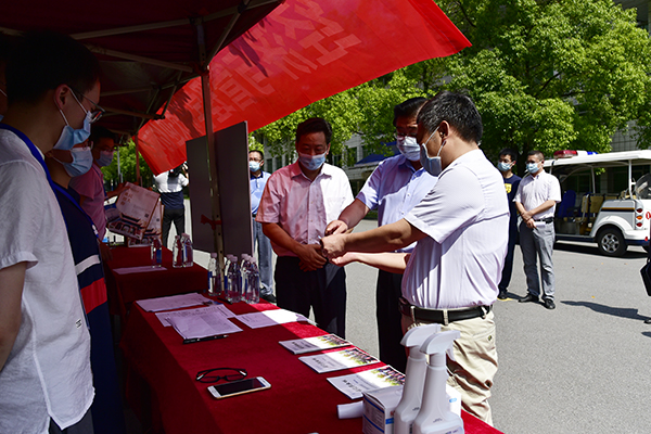 柯俊一行深入食堂、教室、宿舍、留观点、报到点等多处重点区域查看疫情防控各项工作,并现场指导校园入口和医务室隔离通道设置,提出整改意见。