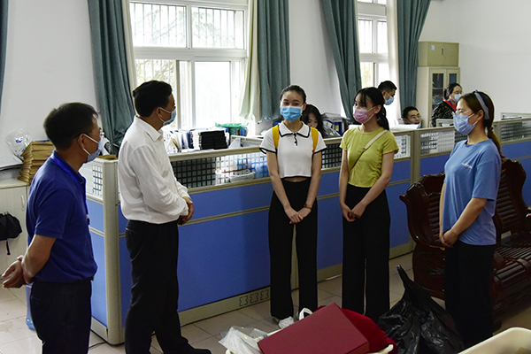 本网讯 6月22日,bat365官网首批毕业生返校的第二天,党委书记吴建清带领校办、学工处、校团委等单位负责人到各二级学院走访,看望慰问毕业生,了解各学院毕业生工作开展情况。