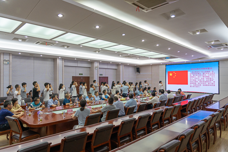 邓磊带领2021年新入职教师宣誓。祝建波宣读了学校《关于认定新增从事教育工作30年教职工的决定》。