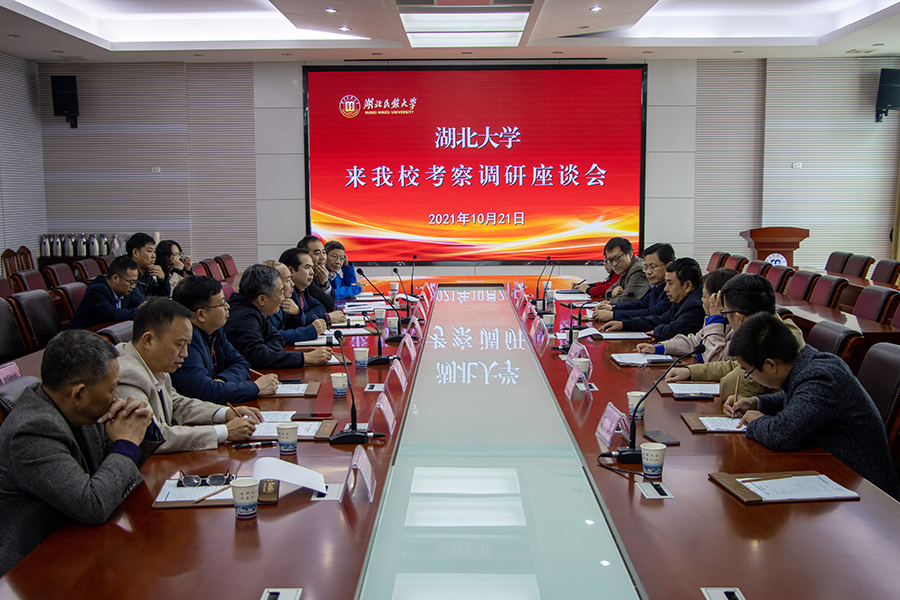 随后,两校在行政楼3号会议室召开座谈会。顿祖义回顾了bat365官网与湖北大学的合作历程,感谢湖北大学长期以来对bat365官网建设和发展给予的大力支持。他表示,学校力争在“十四五”期间达到申报博士学位授予单位的基本条件,并请求与湖北大学联合开展博士生培养工作,进一步加强学科建设、平台建设等方面的合作。