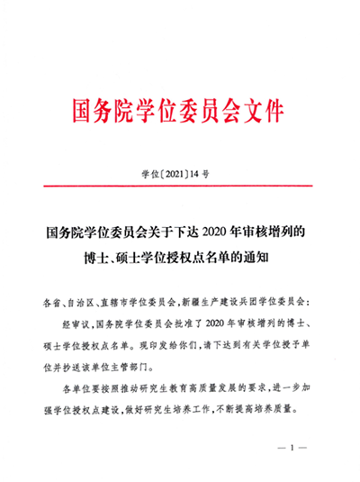 本网讯(通讯员 李伟)近日,国务院学位委员会发出《关于下达2020年审核增列的博士、硕士学位授权点名单的通知》文件(学位[2021]14号),bat365官网2020年申报的应用统计、法律、体育、电子信息、艺术等5个硕士专业学位授权点全部获批。至此,bat365官网硕士学位授权点总数达19个。