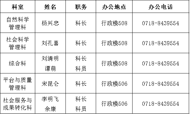 负责科研平台管理、社会服务、科学技术协会、学校科研总经费统计、学校安排的其他工作。分管平台与质量管理科、社会服务与成果转化科(协管)。
