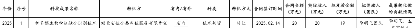 2025年成果转化现金奖励信息(第一批)公示-2025.02.25