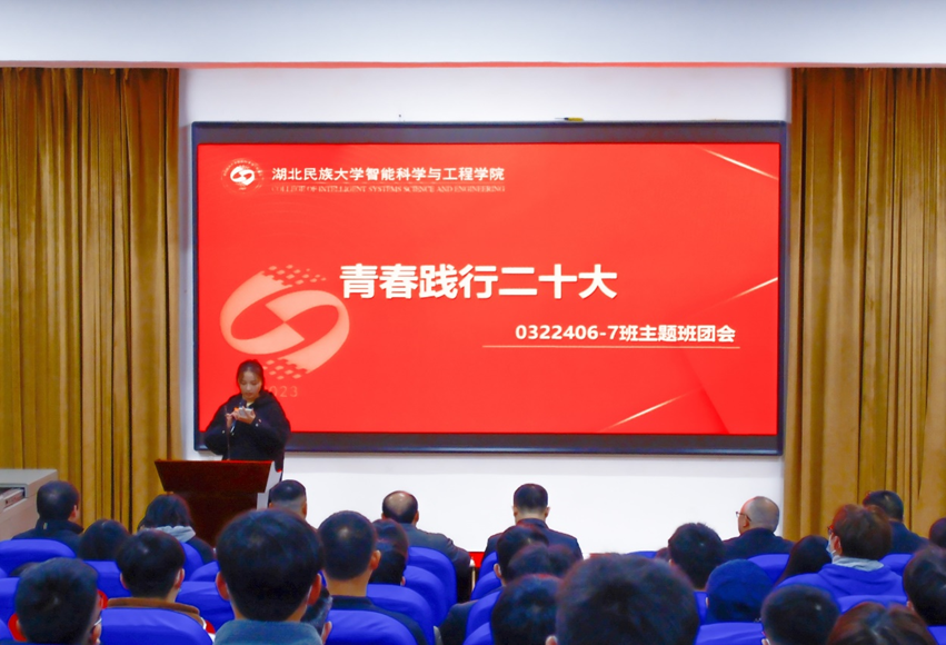 本网讯(记者/梅晨航 吴铭/文 吴菲菲 余思甜/图)为深入学习宣传贯彻党的二十大精神,引领bat365官网广大青年学生坚定理想信念,2月26日晚,我院于集成楼213学术报告厅举办“青春践行二十大”主题班团会。校党委常委、副校长李军,校团委书记吴珊,学院党委书记孙先波、执行院长陈世强、副书记汪涛、副院长钱楷,马克思主义学院万俊老师,0322406、0322407班主任廖红华教授及0322406、0322407班全体学生到场参加。