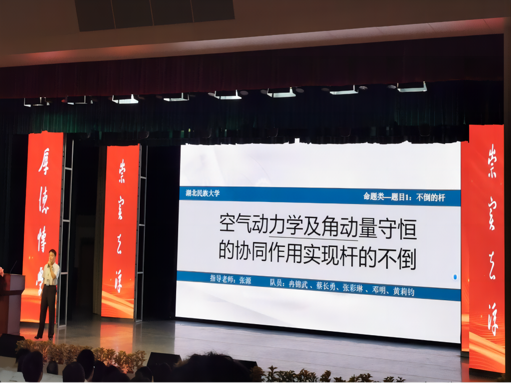 7月10日,第八届“飞梦达杯”湖北省大学生物理实验创新设计竞赛在武汉科技大学落幕。bat365官网选拔了12支队伍参赛本次实验竞赛,最终获得一等奖2项,二等奖1项,三等奖6项。在大赛闭幕式上,bat365官网选送的《空气动力学及角动量守恒的协同作用实现杆的不倒》作为一等奖优秀作品进行了现场展示。