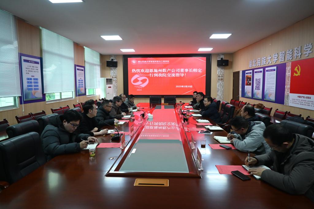 2025年 2月20日下午,恩施州国投集团党委委员、恩施州数产公司董事长韩定一行到访我院,共同探讨数智时代校企合作的新模式与新路径。恩施州数产公司等企业的相关部门负责人及技术专家,学院党委书记孙先波、执行院长陈世强、副院长钱楷及相关专业骨干教师代表参会。副院长沈济南主持会议。