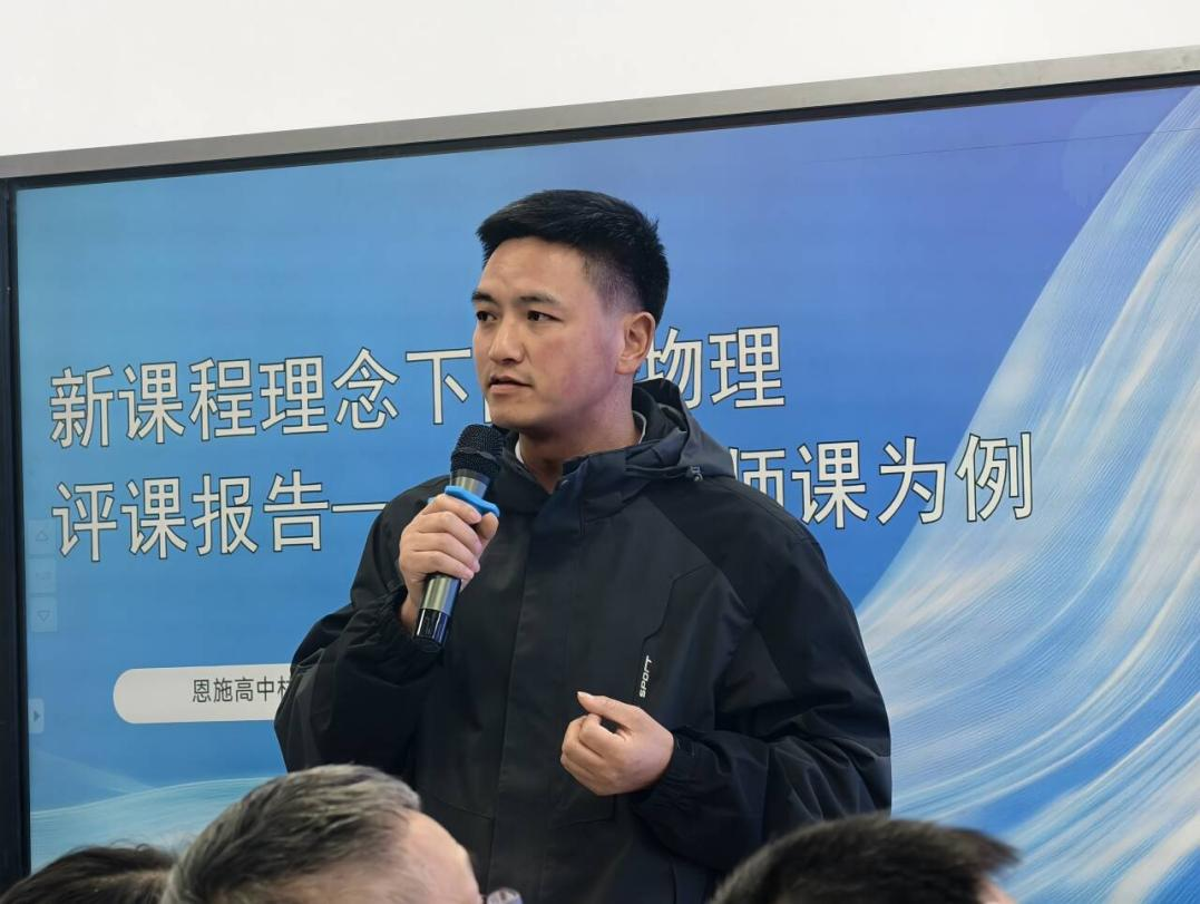 随后,高一物理备课组组长张格老师主持开展了集体备课现场观摩,完整呈现了恩施高中物理组在课题分析、学情研判、教学设计与资源整合等方面的全流程协作模式,展现出规范严谨、务实高效的教研风貌。