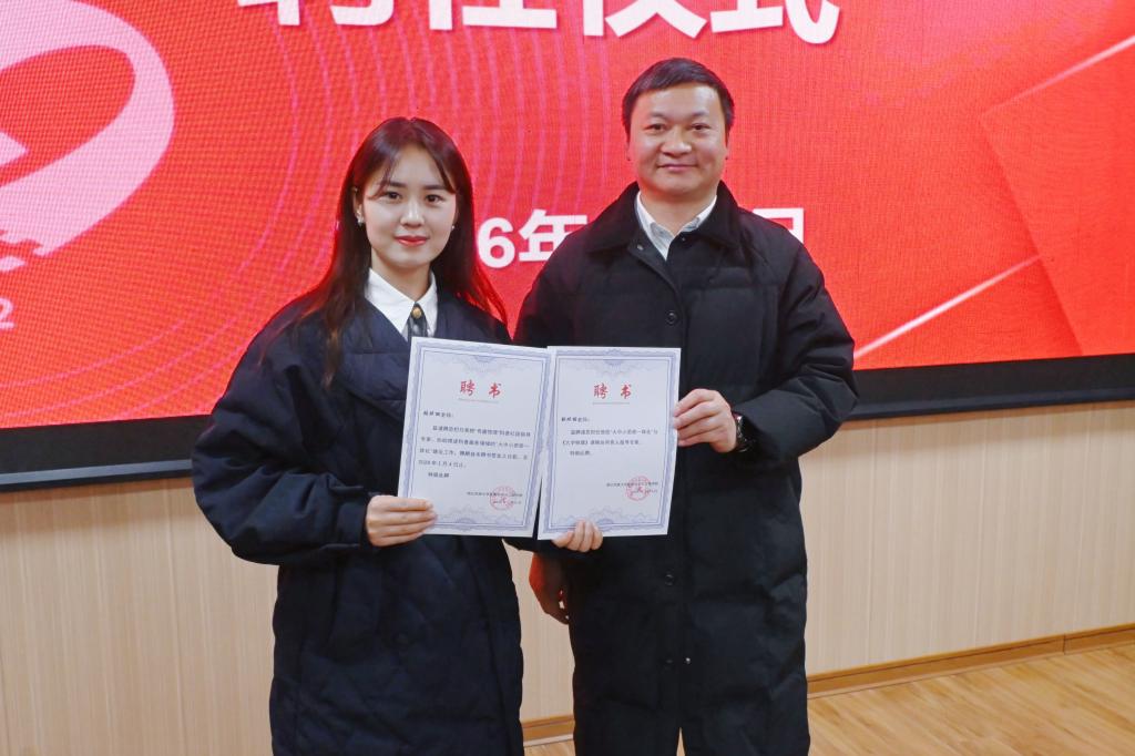 1月4日,智能科学与工程学院举行奇趣“悟”理科普社校外指导老师聘任仪式,第十四届全国人大代表、恩施高中政治教师张琼丽正式受聘为该社校外指导老师。此次活动旨在深化课程思政建设,强化科普教育育人功能,搭建校地协同育人新平台。