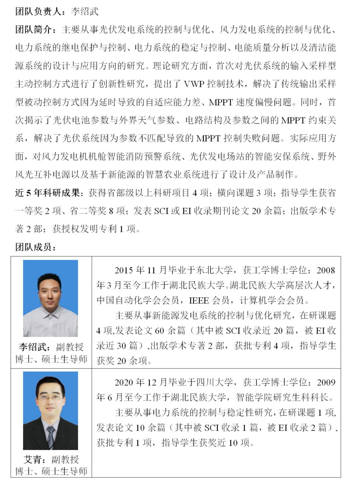 电力电子控制与清洁能源应用科研创新团队