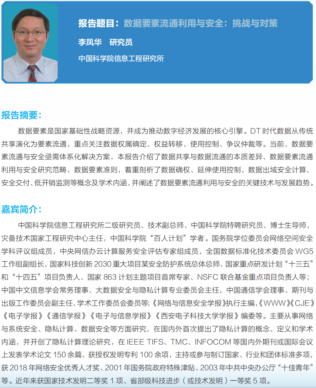 中国科学院信息工程研究所李凤华研究员学术讲座:数据要素流通利用与安全:挑战与对策