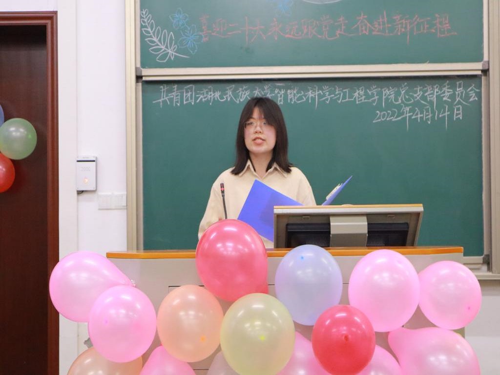 本网讯(记者 柯柏松 梅晨航/文 李明 万文杰/图)4月14日,为使广大青年深化理解习近平新时代中国特色社会主义理论思想,迎接党的二十大和庆祝建团一百周年,我院于修远楼5B410教室举办以理论学“习”我来讲——喜迎二十大、永远跟党走、奋进新征程为主题的第六期百生讲坛决赛活动。本次活动由我院团总支主办,我院团总支书记谭俊妮老师、副书记黄世成、李欣琪、田麟麒受邀出席本次活动并担任评委,亦有部分热情的学生观众前来参加此次活动。