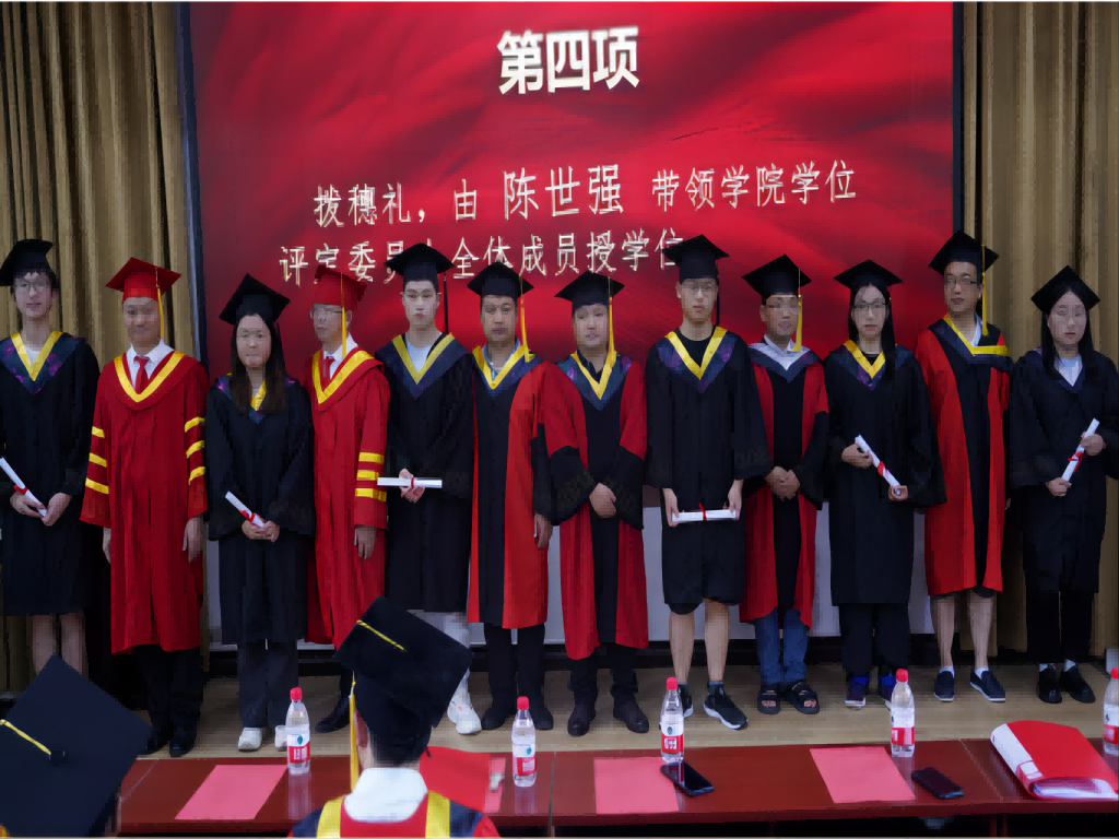 随后,进行的是一项重要的仪式——拨穗礼,由学院学位评定委员会主席陈世强带领学院学位评定委员会成员为毕业生授予学位并进行拨穗礼。拨穗寓意稻穗的成熟,代表毕业生们的学有所成,他们将满载老师的期许与鼓励,在今后的人生展翅高飞。