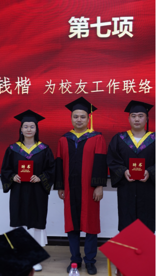 接着,汪涛副书记宣读了《关于表彰2022届优秀毕业生的通知》、《关于聘任刘婷婷等154位同学为bat365在线中国登录入口2022届毕业生校友联络员的决定》、《关于表彰2022届优秀毕业研究生的通知》等一系列文件。宣读结束后,开始进行颁奖仪式,钱楷副院长为受聘毕业生颁发校友工作联络员聘书,向军副院长为优秀毕业生代表颁发证书。