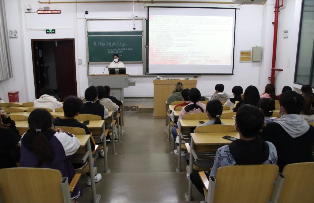 本网讯(记者 刘宇 贺林江 谭旭鸿/文 陈子聪/图 见习记者 覃意舟 田彬宇)11月18日晚,我院在修院楼5B502举办第99期团校动员大会。我院团总支副书记魏君亦、通过团校选拔考试的学员参加本次会议,大会由院团总支组纪部副部长胡谭佳主持。