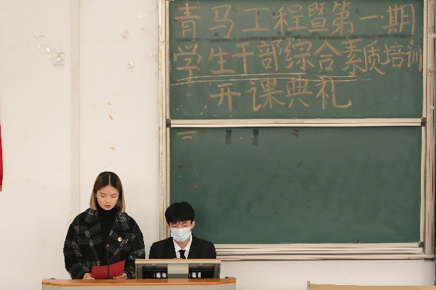 本网讯(记者 谭旭鸿 贺林江/文 严金柱/图 见习记者 桂世康 余思甜)11月24日,我院在修院楼5B508举行了青马工程暨第一期学生干部综合素质培训开课典礼。学院党委副书记汪涛,学工办副主任刘薪,学工办陈淑苗、古海尔尼沙·艾合买提,团总支书记郑扬帆,团总支学生副书记魏君亦、严泽昌出席。我院大一全体学生干部参加,本次典礼由柳哲琼同学主持。