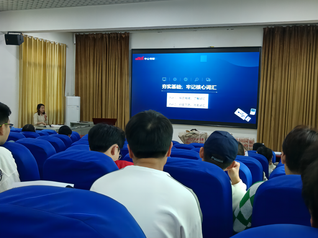 本网讯(记者 柯柏松/文 柯柏松/图)为提高我院学生考研备考积极性,帮助同学们了解考研备考信息及相关流程,提升英语复习的效率,5月3日,我院特邀武汉大学英语硕士文梅老师在集成楼213教室为我院24届同学进行考研英语讲座。