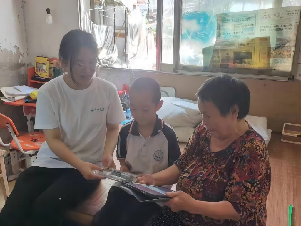 团队成员在留守儿童家中为其送上书包、文具套装等物品,与孩子及家长亲切交谈了解孩子的学习生活情况和面临的实际困难,聆听孩子的理想,鼓励孩子要坚定信心、自强不息,勇敢面对困难、战胜困难,叮嘱孩子要保持积极乐观的生活心态,努力成为对社会有用的人才。
