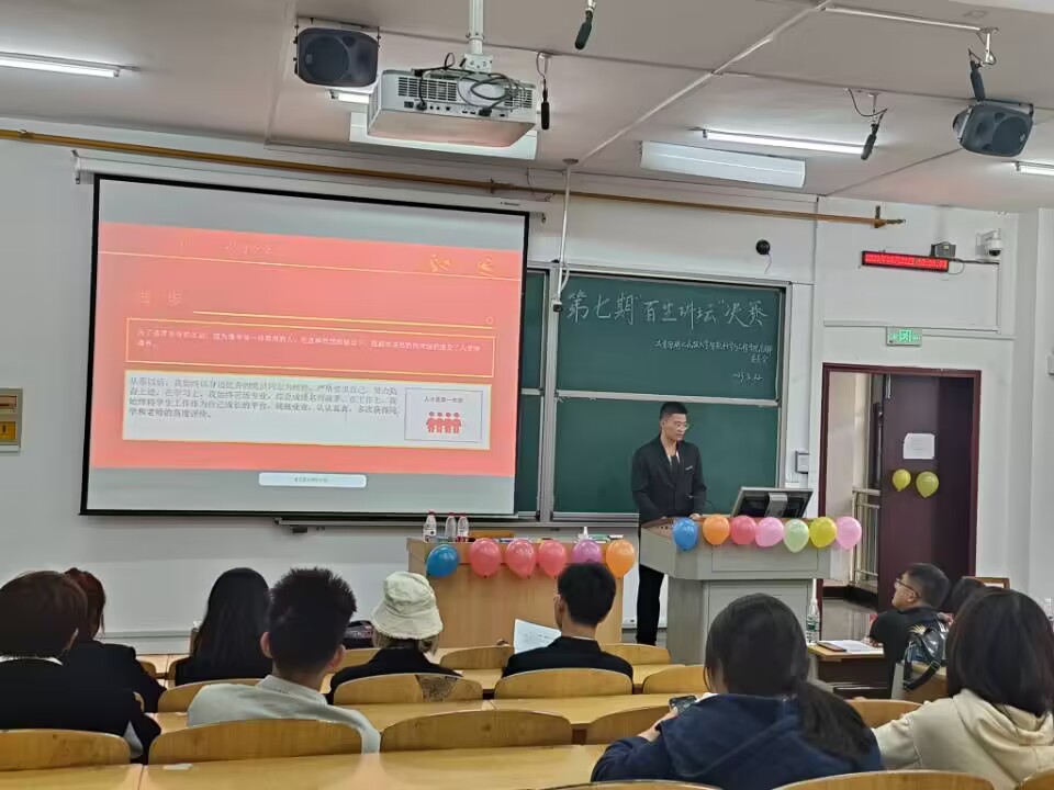 2023年5月18日,智能科学与工程学院于修远楼5B412举办了第七期“百生讲坛”活动,主题为“学习二十大 永远跟党走”团总支书记郑扬帆出席活动。参赛选手和学院部分学生参加活动。