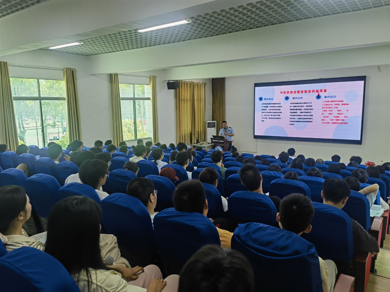 为加强校园电信诈骗防范工作,我院于5月23日下午在集成楼213会议室教室开展民警反诈进校园主题宣讲活动。本次讲座邀请到舞阳派出所杜钦辉警官主讲,辅导员陈淑苗、郑扬帆老师出席会议,2022级、2023级学生参与本次讲座。