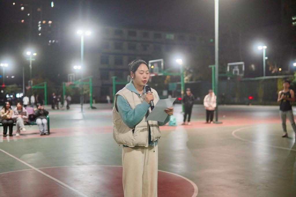 11月21日晚18:30,我院“迎新杯”篮球总决赛在团结广场隆重开赛,2025级物理专业与智能制造工程专业两支队伍展开巅峰对决,现场氛围热烈。赛前,王洋老师致开幕词,首先向晋级总决赛的物理专业、智能制造工程专业两支队伍表示祝贺,同时向赛事筹备师生致以感谢,更寄语全体参赛队员“以球会友,在赛场收获成长”,为比赛拉开序幕。