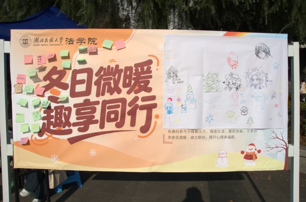 2025年12月6日下午,bat365在线中国登录入口智能科学与工程学院心理健康工作坊与法学院公寓委员会在大学生广场开展了一场主题为“冬日暖阳,趣享同行”的心理健康主题活动。随着气温渐降,学习压力的增大和生活节奏的加快,不少同学难免会出现情绪低落、社交意愿减弱等季节性心理波动。为着力营造温暖互助的校园氛围,我们特别策划了本次主题心理体验活动。