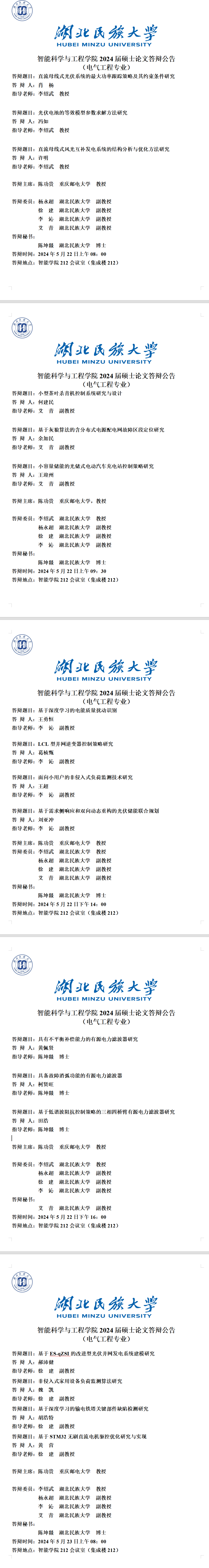 智能科学与工程学院2024届硕士学位论文答辩公告(六)