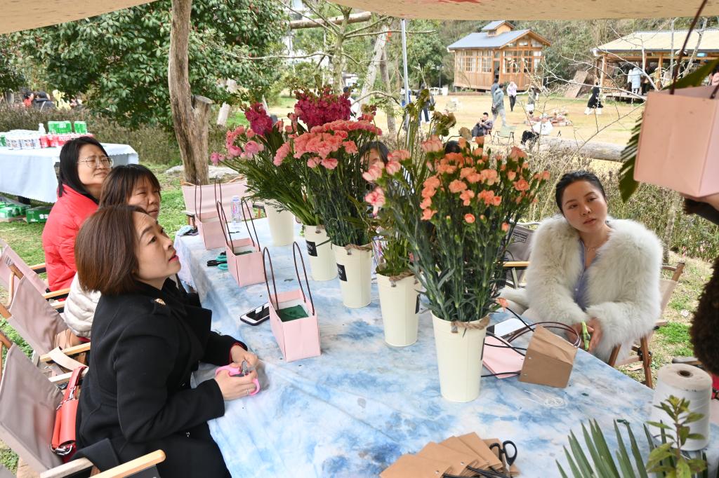 另一部分老师则沉浸在插花艺术的海洋中,学习花材选择、色彩搭配、造型设计等技巧,用灵巧的双手将一朵朵鲜花变成精美的艺术品,感受着生活的美好和艺术的魅力。
