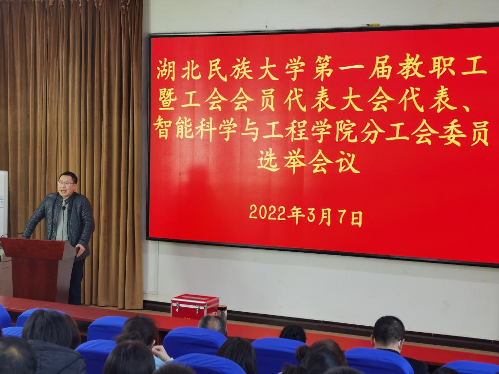 (本网讯 王晓敏)2022年3月7日下午,智能科学与工程学院在学院二楼学术报告厅召开学院分工会委员会换届、bat365在线中国登录入口第一届教职工暨工会会员代表大会代表推选工作会议。党委副书记张严超主持会议,智能科学与工程学院106名教职工参加会议。