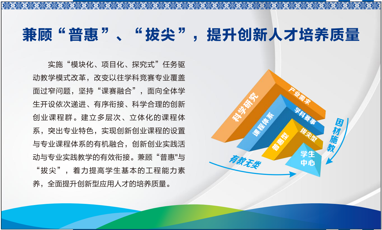 学院以OBE理念为指引,成立创新创业教育工作领导小组,出台《智能科学与工程学院创新创业教育改革实时方案》等制度,深化创新创业教育改革。创新实践中心占地约2000平方米,开设12个创新实验室,大力推进“普惠制+拔尖型”双创人才培养改革,大规模实施大学生创新创业训练计划,以学科竞赛为牵引,全面提升学生创新实践能力。