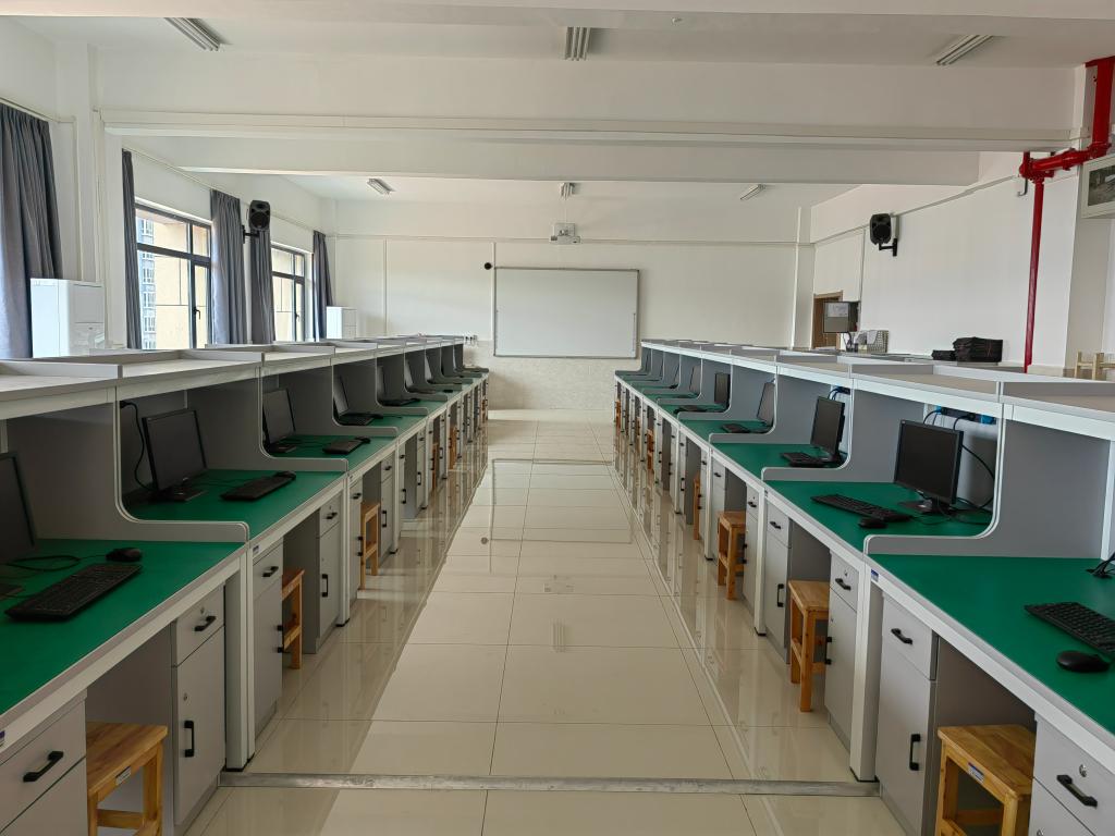 智能制造实验教学中心(金工中心)-绘图仿真实验室(左)、钳工实验室(右)