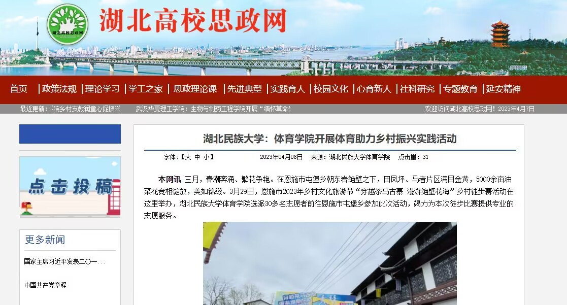 【湖北高校思政网】bat365在线中国登录入口:体育学院开展体育助力乡村振兴实践活动