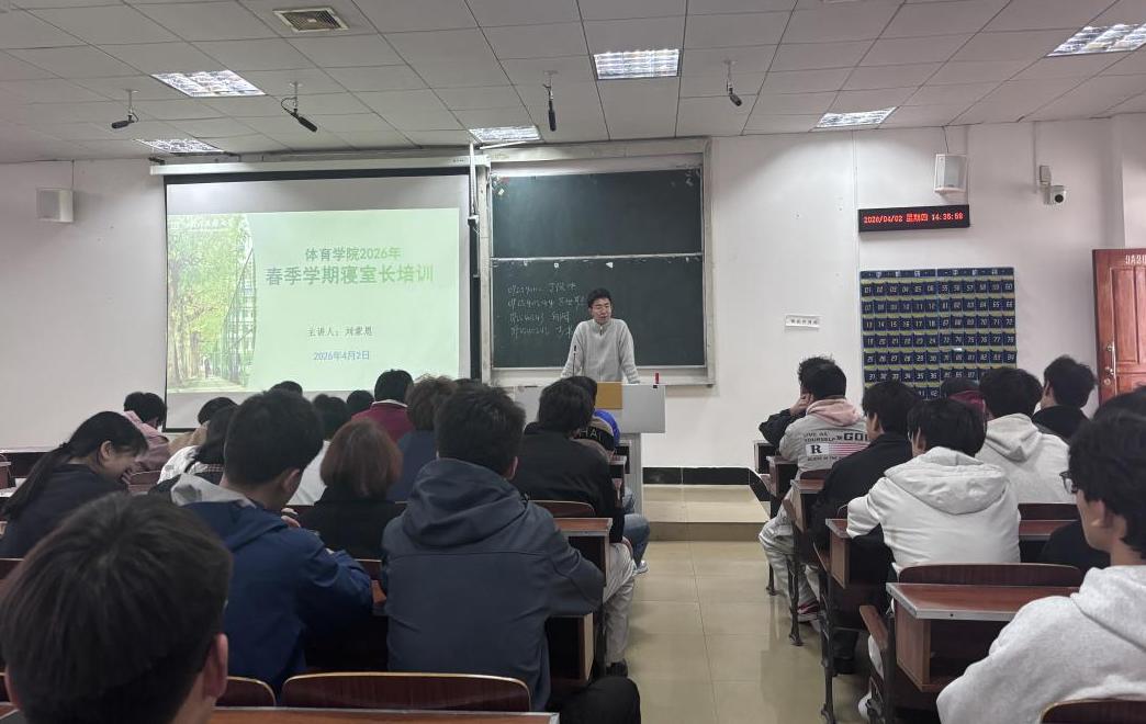 为全面落实《bat365在线中国登录入口寝室长选拔及管理办法(试行)》与学生寝室专项治理工作要求,进一步明确寝室长岗位职责,提升寝室长管理能力与安全防范意识,营造干净、整洁、和谐、向上的寝室文化氛围,2026年4月2日,体育学院组织开展年春季学期寝室长培训,学院全体寝室长参加本次培训,培训由刘蒙恩老师主讲。