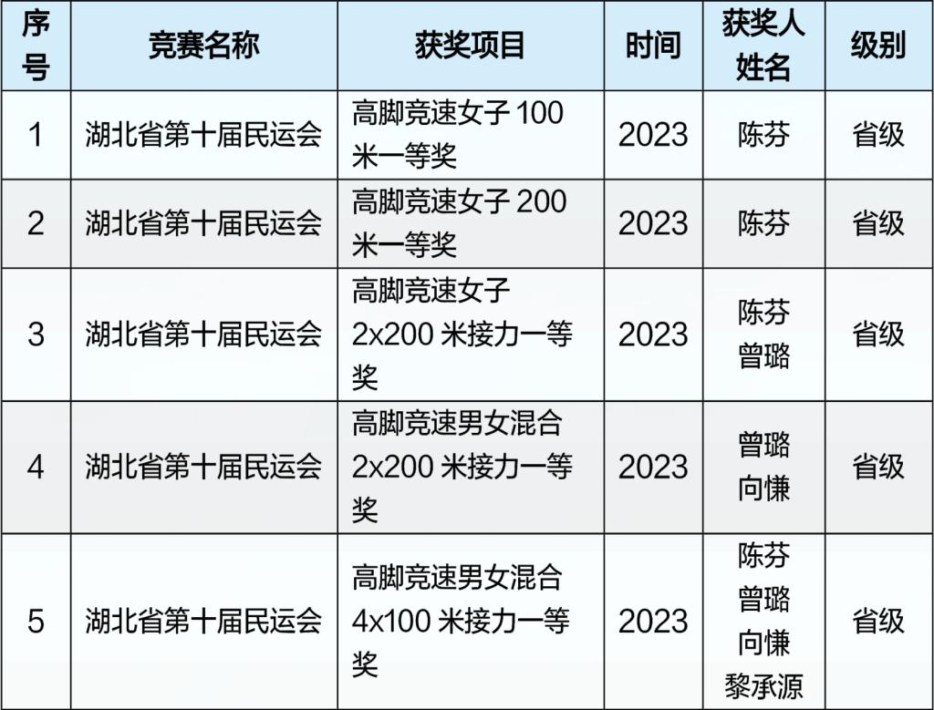 体育学院近五年运动竞赛成绩