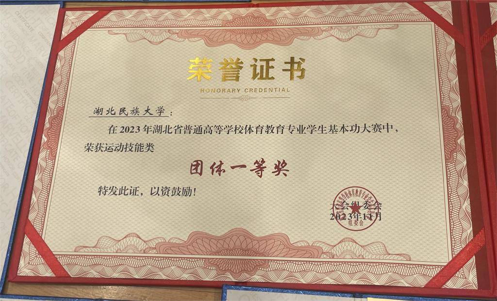 11月9日至11月12日,由湖北省教育厅主办,武汉体育学院、湖北省高等学校体育教学指导委员会共同承办的2023年湖北省普通高等学校体育教育专业学生基本功大赛顺利举行,bat365在线中国登录入口代表队夺得一等奖1项、二等奖1项、三等奖1项。