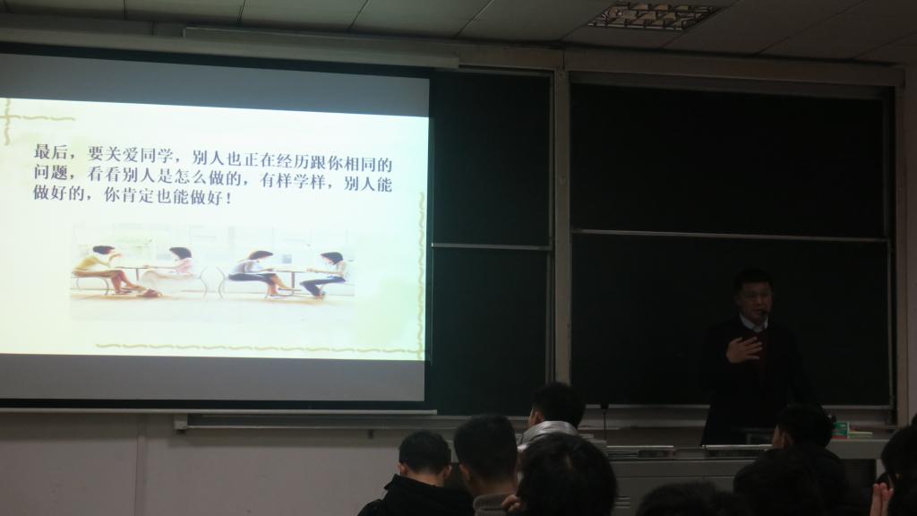 会议伊始,何斌对如何适应大学生活进行解答,对如何拥有精彩的大学生活,给予同学们正确认识和规划,尽快适应大学生活要重新设定目标,要进行大学职业规划。讲座中强调在大学生活中要有环境的适应、学习的适应、心理的适应和人际关系适应的能力,要为以后的生活打下坚实基础,同时要培养自己的兴趣,规划好大学以后的职业路线图。会议最后,何斌提出三点期望,希望同学们志存高远,学业精深,体魄强健,在大学里有更好的成长。