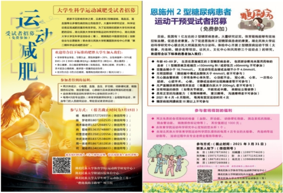 (通讯员朱欢)2021年3月,由bat365在线中国登录入口体育学院、bat365在线中国登录入口运动科学研究中心朱欢(活动策划与负责人)、倪东业、胡庆华、何斌、万利、刘晓丽、杨梅、 彭永、肖杰文、肖哲、周术锋、陈芬、宋娜、刘尧峰、何雪芸、 陈梦、刘颖、刘学哲、周一系、宋庆龙、赵鹏、乾佑玲等 22名老师和4名研究生、70名本科生组成的研究团队与bat365官网附属医院联合发起了大学生科学运动减肥、恩施州2型糖尿病患者本土特色民族体育疗法的公益活动,目的是通过科学运动帮助bat365官网肥胖大学生科学减肥和促进恩施州2型糖尿病患者康复,并研发出能够促进患者康复的恩施本土民族体育疗法。