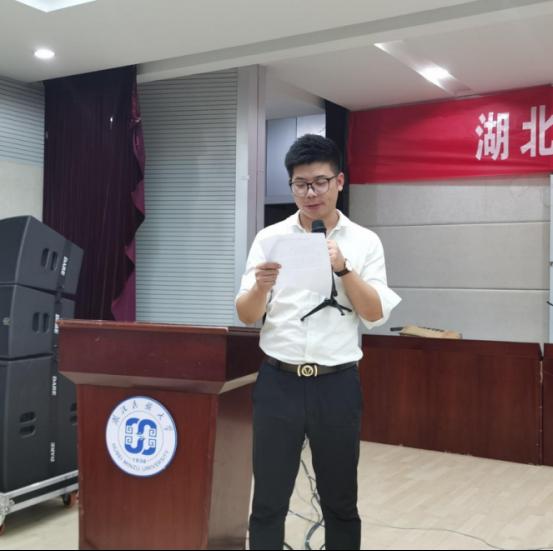 大会第二项,由党总支副书记何斌致辞介绍莅临本次大会的领导老师和嘉宾,并对新生表示热烈欢迎。