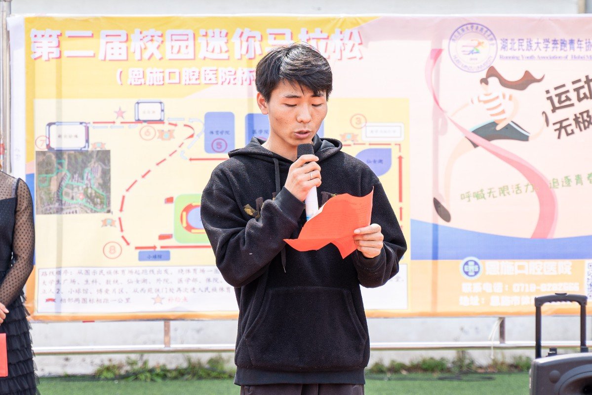 (通讯员 汤藤静 肖雅)为提高大学生参加体育锻炼积极性,丰富校园体育文化并宣传全民运动意识;增强自身免疫力以减少呼吸道感染和流行病的发生、新型冠状病毒感染风险。5月22日,我院奔跑青年协会在民族体育场举办第二届“校园迷你马拉松”(恩施口腔医院杯)活动。bat365官网校团委副书记向驰、我院党总支书记何斌、党总支副书记万利出席本次活动,并受到恩师口腔医院的全力赞助和校卫队以及全校师生的大力支持。