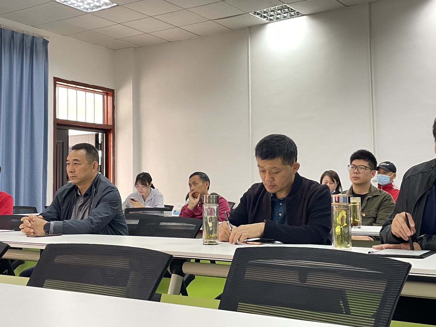 体育学院党总支理论学习中心组于9A103智慧教室集中组织二十大专题学习,体育学院党总支委员、科室负责人、专业负责人、体育学院各支部书记和支委会成员集中学习收看开幕会。体育学院教职工积极收听收看开幕会,进行政治理论自学,强化思想政治理论。