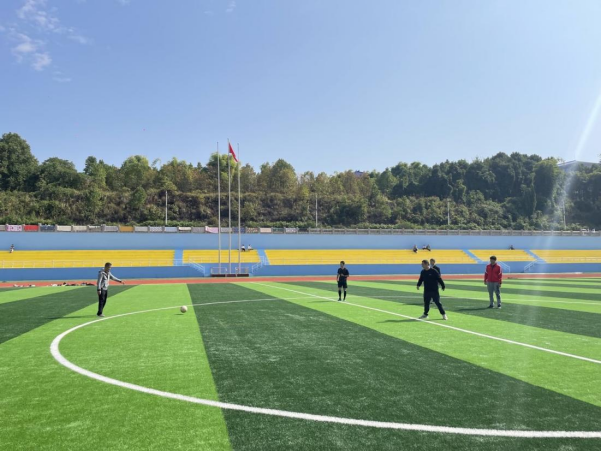 最后,到场的学院领导们到足球场中心进行开球仪式。